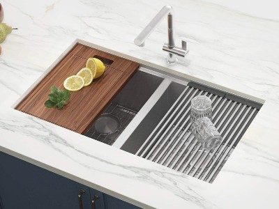 水槽實標實厚,臺下安裝,水槽容量大,外觀簡約大氣,有專門技術安裝指引,快捷無滲漏,減少安裝造成的水槽磨損。